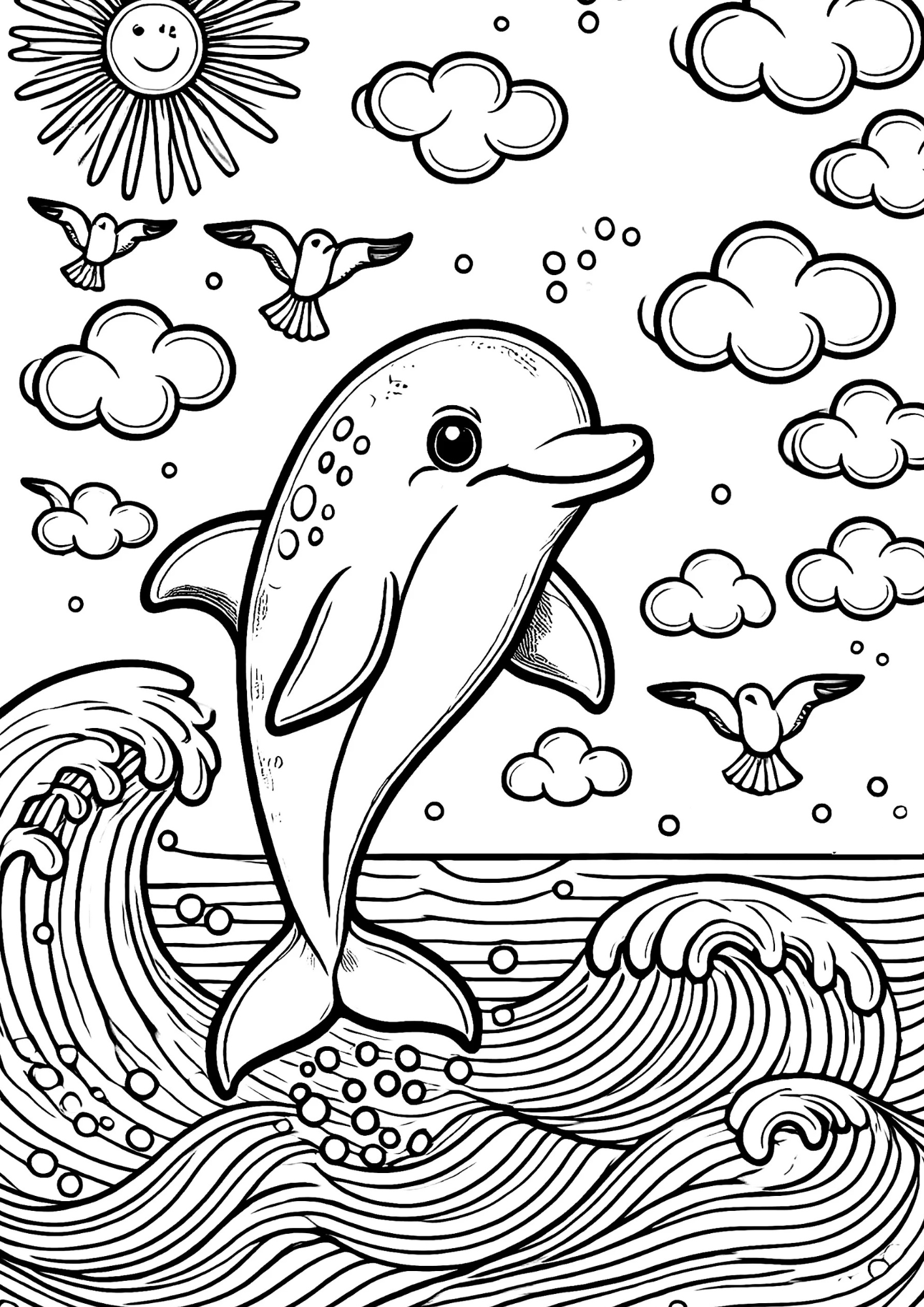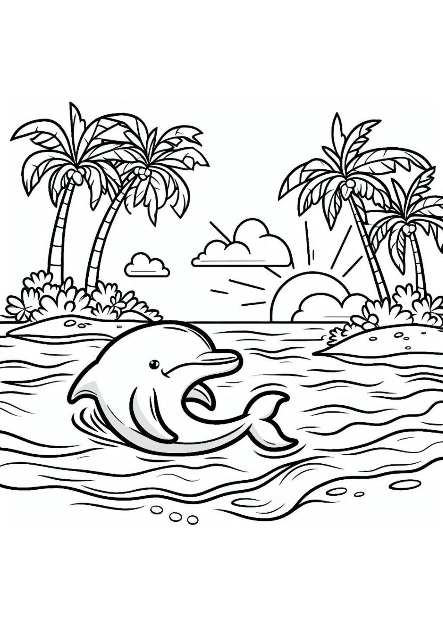 Mergulhe na magia dos oceanos com o Desenho para Colorir Golfinho! Ideal para amantes da vida marinha e do encanto desses animais inteligentes, este material traz golfinhos em diferentes cenas: saltando sobre as ondas, nadando em grupo ou explorando recifes, todos prontos para receberem suas cores.