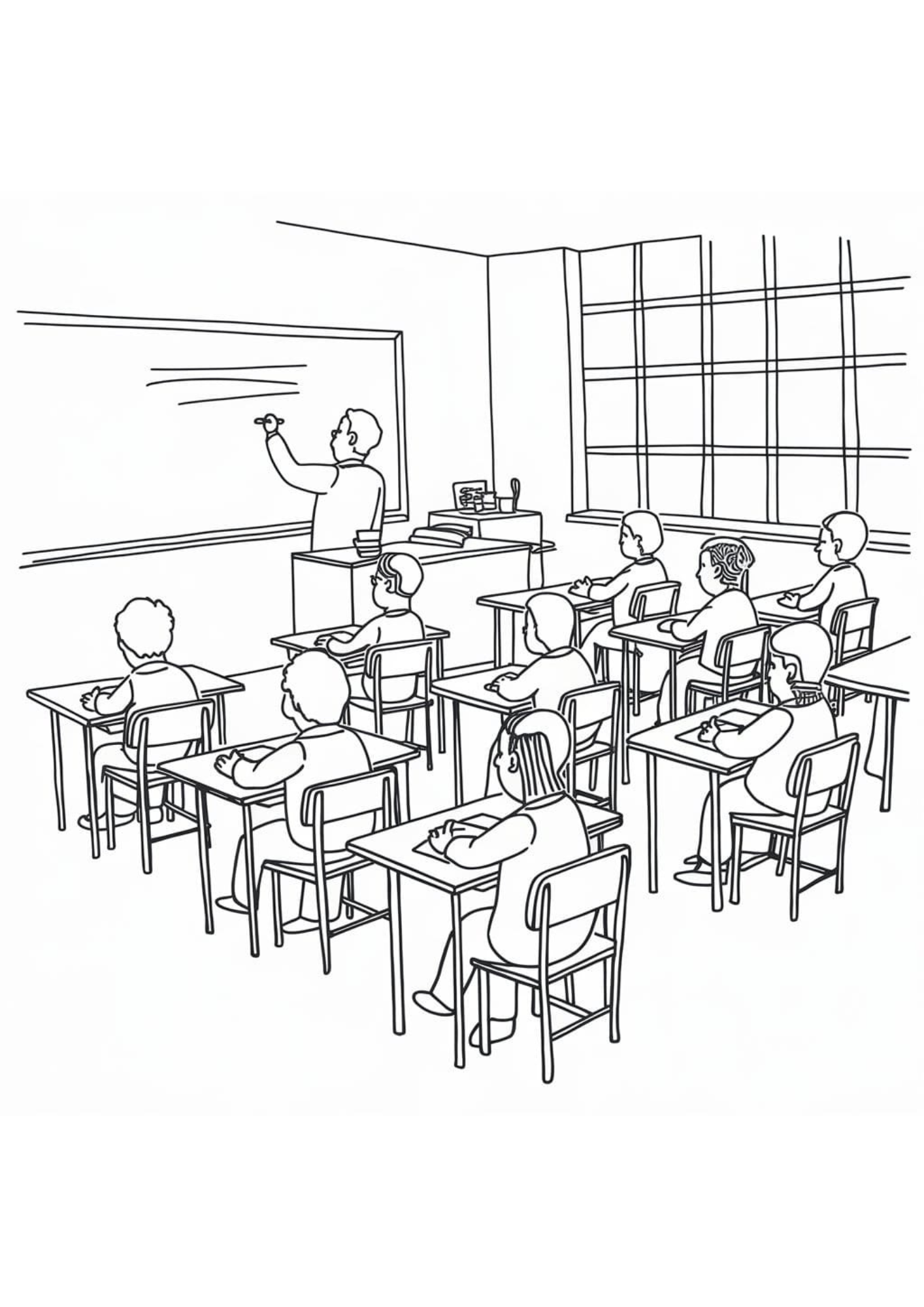 Mergulhe no universo do conhecimento com o Desenho para Colorir Professor! Perfeito para crianças e adultos que admiram a educação, este material traz professores em salas de aula, interagindo com alunos, quadros, livros e materiais didáticos, todos prontos para receberem suas cores.